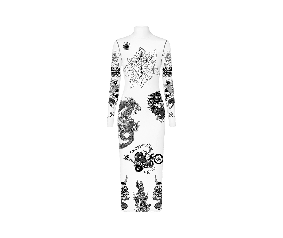 Ed Hardy x Matuê "Tattooed Skin" Vestido de Tule Branco
