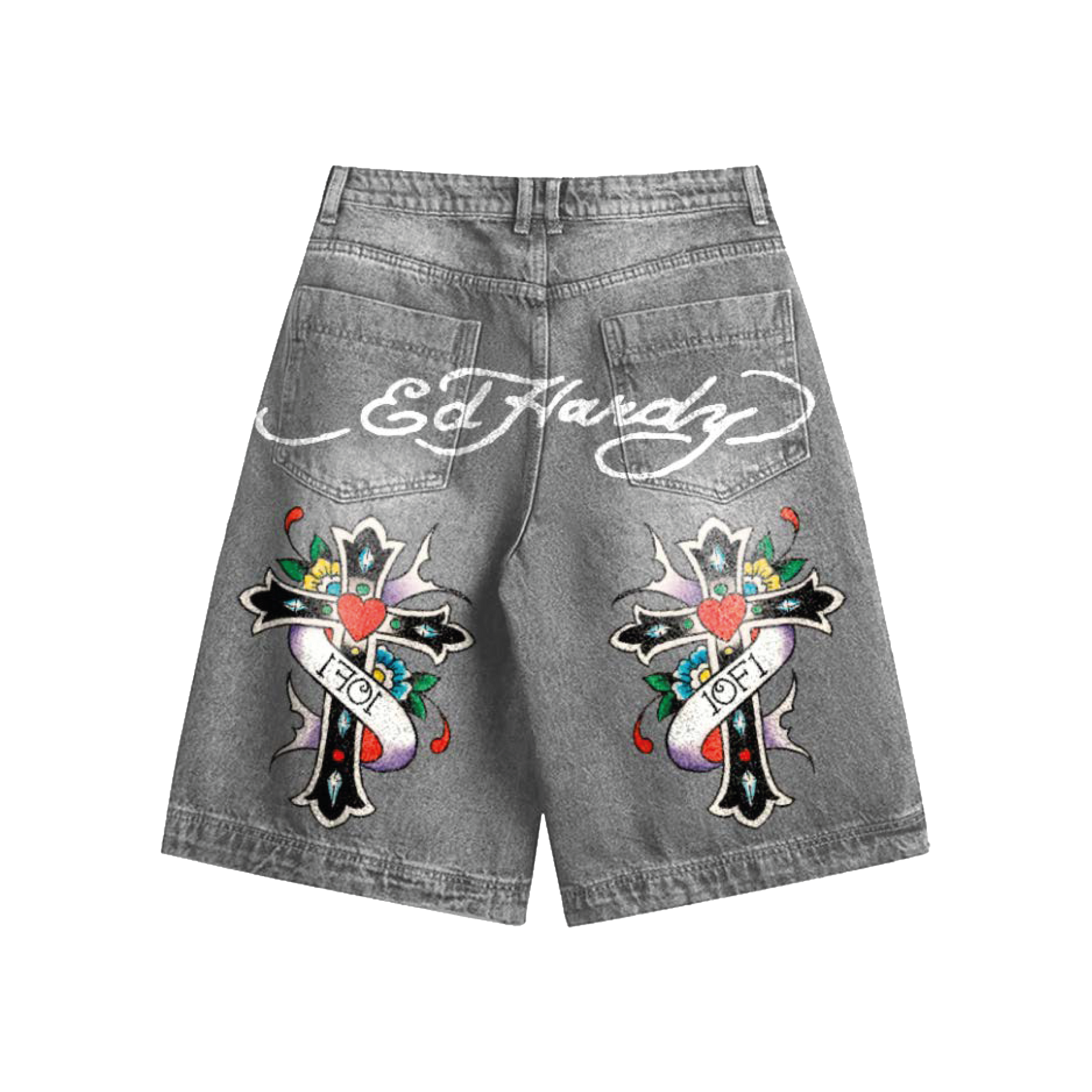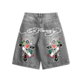 Shorts Jeans da collab oficial entre Ed Hardy e Exclusivist.