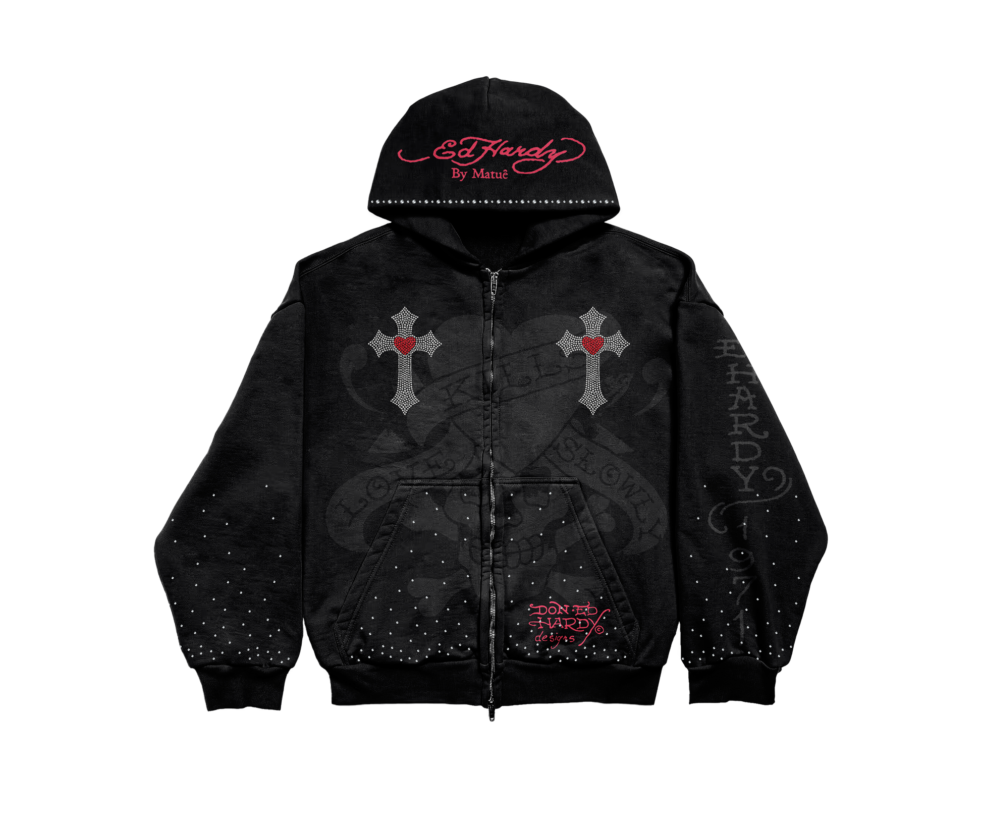 Ed Hardy x Matuê "Cruz" Moletom Zip Up Preto