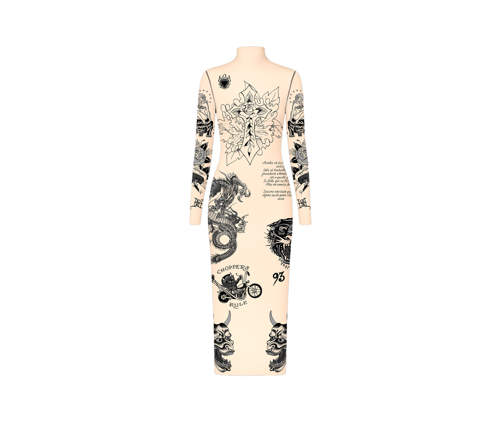 Ed Hardy x Matuê "Tattooed Skin" Vestido de Tule Bege